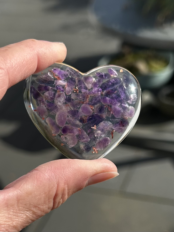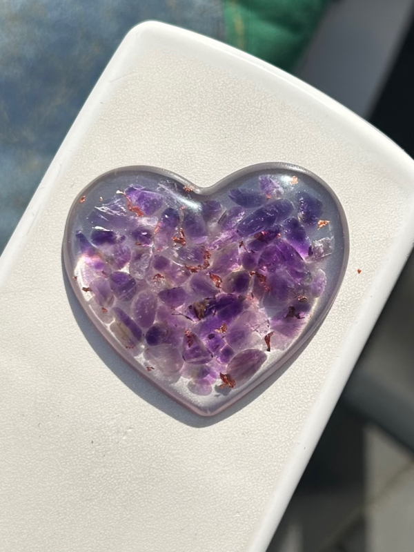 Hartje met Amethist en Koper (orgonite) 5,2x4,7cm